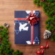 Hanukkah Dove Peace Star de David Patterned Dark Blue Wrapping Paper Roll.