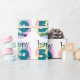 Blauw gelukkige 50ste verjaardag. Leuk om te geven als cadeau aan iemand die vijftig jaar is geworden. Vrolijk design met regenboog kleuren.