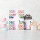 Roze gelukkige 60ste verjaardag. Leuk om te geven als cadeau aan iemand die zestig jaar is geworden. Vrolijk design met regenboog kleuren.