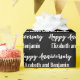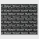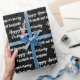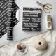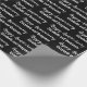 This black and white anniversary wrapping paper says "Happy Anniversary" in a cursive script. The text you can change to the names of the husband and wife is not in script. This is black wrapping paper with white text. All text can be edited or deleted.