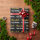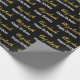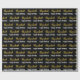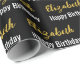 El papel de envoltura es negro. Tiene un patrón de texto para el nombre del destinatario en un guión falso de oro y la frase Feliz Cumpleaños. El nombre (Mostrado: Elizabeth) aparece en un elegante guión dorado falso (no Relieve metalizado). El otro texto es blanco. Todo el texto se puede editar.
