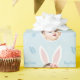 Añade un toque lindo a tu regalo de vacaciones de Pascua con este adorable patrón personalizado de orejas de conejito con una foto de tu pequeño o chica. Añade texto personalizado, como Feliz Pascua y el nombre de tu hijo. El fondo es un azul pastel bonito. ¡Es una gran adición a un regalo para un niño o chica!