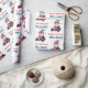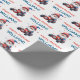 Elevate your gifting with this vibrant patriotic birthday wrapping paper. It features a gnome driving a race car, with a festive striped Independence Day hat. This wrap is perfect for a summer party or a July birthday celebration for a little one who loves high-energy fun.