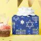 Este diseño de vacaciones de Hanukkah presenta un brillante fondo azul con menorah y estrella de David overlay. #hanukkah #chanukah #festivales #festividad #moderno #azul #menorah #starofdavid #jewish #elegante #moda #patrón #personalizado #addyourown #giftwrap #papel de envoltura #giftwrapping #suministros de fiesta