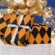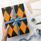 Papel de envoltura diseñado con un patrón de arlequín negro y naranja de tamaño extra grande. Personalizar el color naranja de una manera fácil.