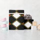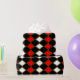Los diamantes rojos resaltan este audaz diseño de arlequín blanco y negro perfecto para todas las ocasiones.