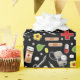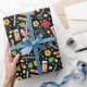 Creative medical-themed giftwrap for doctor or other healthcare professional featuring medical supplies and flowers on black background.