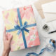 Papel de regalo para una bonita fiesta de boda en un diseño de flores de acuarela en coral y rosa. El fondo de coral se puede cambiar a cualquier color, adecuado para cualquier ocasión especial.