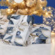 Hermoso envoltorio de regalo de Navidades azules. Navidades azules de moda regalan papeles para envolver. Elegante diseño impecable.