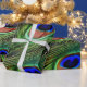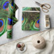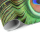 Los bonitos verdes y azules con toques de melocotón y rojo componen esta majestuosa pluma de aves