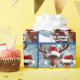 Este diseño presenta un dólar y un perro que llevan sombreros de Santa en la nieve.