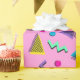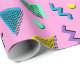 Hermoso y brillante, este papel de regalo presenta un diseño de los 80 con formas coloridas sobre un fondo rosa. La impresión es vibrante, nítida y animada. Disponible en varios estilos y texturas. ¡Haga su pedido hoy mismo!