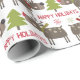 Papel de envoltura encantador y moderno con reno personalizado adorable con árboles de Navidad y vacaciones felices con letras rojas en un fondo blanco