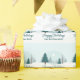 Un hermoso paisaje invernal con pinos verdes verde azulados y terreno cubierto de nieve sobre papel de envolver de vacaciones personalizado. Personalizar este papel de envolvimiento de Felices Fiestas para regalos de Navidades de tu familia.