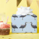 Este papel de envoltura presenta un patrón repetido de la Gran Garza Azul. Este magnífico compañero es un gran ave de vástago de la familia de garza Ardeidae, común cerca de las costas de aguas abiertas y en los humedales. Él es la garza más grande de América del Norte. Entre las características destacables se incluyen plumas de vuelo latas, muslos de color rojo-marrón y una franja de paro rojo-marrón y negro por encima de los costados; el cuello es gris oxidado, con blanco y negro por la parte delantera; la cabeza es más pálida, con una cara casi blanca, y un par de columnas negras que van desde justo encima del ojo hasta la parte posterior de la cabeza. Las plumas en el cuello inferior son largas y de tipo plume. Debido a que esta es la temporada de reproducción, también tiene penachos en la parte inferior y una cuenta de naranjas. Sus plumas están iluminadas por la luz luminosa del sol.