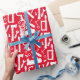 Hacer proyectos o envolver regalos para alguien que esté en el negocio de carpintería , un hombre práctico o similar, esto es sólo lo que es una colección de todas las herramientas que puede encontrar en su caja de herramientas; con martillos, taladros, franjas, tuercas y pernos, etc. en siluetas blancas sobre rojo