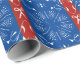 Estresantes de mar, edredones y todo aquel que desee coser y hacer artesanía apreciará este papel de envoltura rojo y azul lleno de imágenes del costurero. Hierro, agujas, tijeras y rick rack sobre un fondo floral femenino.