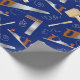Papel de envoltura azul con un patrón de herramientas carpinteras como sierras, cincelas, miters, aviones y maletas. Perfecto para el chippy, carpintero, fabricante de gabinetes, trabajador de la madera o entusiasta del DIY.