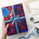 Papel De Regalo hexágono azul mezclado con curvas rojas superpuest