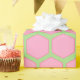 Este papel de envoltura tiene un diseño de hexágonos rosa pálido en un campo de verde pálido.