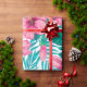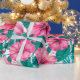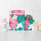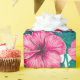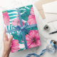 Diseño de patrones acuáticos con flores de hibisco y hojas de palma