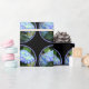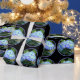 Foto de hortensias azules y amarillas en un jardín. Con un mosaico para crear el diseño en este papel de envoltura.