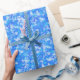 Las mariposas de encaje se amontonan en una fresca paleta azul en esta encantadora envoltura de regalo.