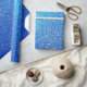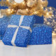 Cierre de las gotitas de agua helada sobre fondo metalizado azul.
