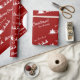 Añada un toque estacional divertido a sus regalos de vacaciones con este papel de envuelto rojo y blanco personalizado. El papel envuelto presenta un fondo rojo con el saludo blanco de Feliz Navidad y el texto de Ho Ho Ho Ho, tu apellido familiar y Santa Claus volando en su trineo con renos. Este papel de envolver hace una gran adición personalizada a tu regalo de Navidades!