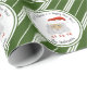 Difunde la alegría de los Navidades con este papel de regalo de vacaciones personalizado y hecho por el personalizado, que presenta un regalo muy festivo y cura a Santa Claus cantando HO HO. Decorada con un clásico de vacaciones de líneas diagonales verdes y blancas, simulando rayas de caramelo de menta. Ilustracion original de Suki's, todos los derechos reservados.