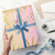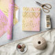 Este papel envolvente presenta un diseño tropical lúdico con hojas de palma doradas diseminadas por un suave fondo rosa y melocotón. Las hojas de oro resplandecientes resaltan, añadiendo un toque lujoso, mientras que los detalles de pinceladas de oro abstracto dispersos le dan al diseño un ambiente animado y enérgico. Los cálidos tonos pastel crean un ambiente alegre y brizante, perfecto para celebraciones festivas, regalos de verano o celebraciones tropicales. La combinación de elegancia y diversión garantiza que este papel de envolver hará que cualquier regalo se sienta especial y vibrante.