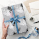 Papel de envoltura de diseño de patrón de foliación de hojas vacacionales monocromo minimo y moderno. Nuestro moderno papel de envoltura en negro, blanco y gris es perfecto para un estilo elegante, moderno y no tradicional. El papel de envolvimiento presenta nuestra silueta rústica y sencilla de hoja de cedro y pinecones dispuestos en una moderna letra audaz para dar un aspecto atrevido. Obra de arte y diseño de patrones dibujada a mano por Moodthology Papery.