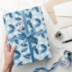 Papel De Regalo Hojas azules y flores blancas patrón sin problemas