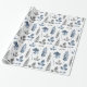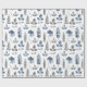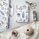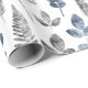 Papel de envoltura floral moderno azul y blanco con un patrón de hojas de helecho y florales en un patrón de repetición tenue