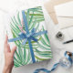 Modelo de la acuarela de hojas de palmeras. Todo el esto da una apariencia única al papel de embalaje.