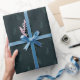 Ramas monocromáticas en azul/cian con puntos dorados festivos. Un sencillo papel de envolvimiento de mezclador/coordenadas que funciona bien combinado con toda la colección de Navidades.