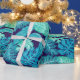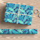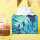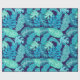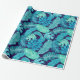 Bosques tropicales con un color verde y turquesa sobre un fondo morado oscuro. Perfecto para envolver regalos para cualquier ocasión.