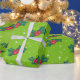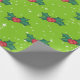 Papel De Regalo Holly Berries con nieve y estrellas en verde brill