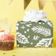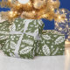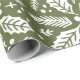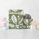 Con el patrón original ilustrado de hojas, bayas y agujas de pino en verde. El color de fondo es el personalizable.