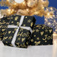 Un Divertido Negro Y Oro Patrón De Papel De Envoltura De Corazones Y Copos De Nieve Y Las Palabras Holly Jolly En Oro