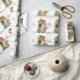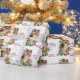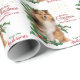 Este bonito personalizado de papel de envolvimiento de regalo de Navidad muestra a un perro pastelero de Shetland sentado frente a las estacas llenas de bayas rojas. El texto rojo a la derecha dice "FELIZ Navidad Y FELIZ AÑO NUEVO". El texto de su personalizado se encuentra a continuación. Una rociada de confeti de oro en el fondo añade un poco de brillo, y el patrón se repite a través de la superficie del papel.