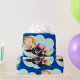 Un hombre volando con un cohete en la espalda. Este diseño se ve realmente efectivo en este papel de ajuste