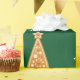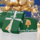 El moderno envoltorio de Navidades para los niños, con un elegante diseño que incluye un muñeco de nieve con pan de jengibre, árbol de Navidad y Santa, copos de nieve, la "Feliz Navidad" en una tipografía elegante, y un nombre personalizado. En un fondo verde.
