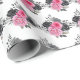 This fun and whimsical wrapping paper features hot pink and silver elegant flowers.