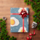 Patrón de huevos fritos frescos en un fondo azul cielo. Desayuno por la mañana:)