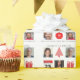 Agrega 5 fotos y texto para personalizar este envoltorio de regalo de collage de fotos único de Navidad. Con iconos modernos en rojo.