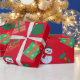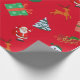 Iconos de los Navidades rojos envolviendo papel con Santa, regalos, trineo de Santa, reno, árbol de Navidad, caldo, bauble y muñeco de nieve. Este papel envolvente le da a cualquier regalo el espíritu Navidad con estilo. Puede cambiar el fondo rojo de este ajuste de regalo de Navidades a cualquier otro color si lo desea.