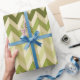Feliz patrón zag zig súper grande suavemente sombreado para crear una ilusión de "papel doblado" 3D. En cálida cosecha de verde musgo, hiedra, marfil y liméade pálido. Este diseño de papel envolvente funciona especialmente bien con el papel de lino opcional.
