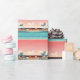 Isla verde de cocoteros se adentra en un cielo atardecer con nubes. Ilustracion marino tropical vintage. Sueños tropicales de época con cocoteros y cielos al atardecer. Podrá sumergirse en un vintage paisaje tropical con una encantadora isla y un cielo con puesta de sol. ¡Puro paraíso! puesta de sol, nube, ilustracion, personalizado, coco, árbol, palmera, océano, olas, cielo, isla, agua, tropical, verano, viaje, naturaleza, paisaje, mar, verde, azul