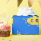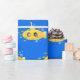 ¡Una alegre aventura submarina amarilla espera! Dibujado en un lindo estilo de ilustracion personalizado en un fondo azul para una celebración divertida!